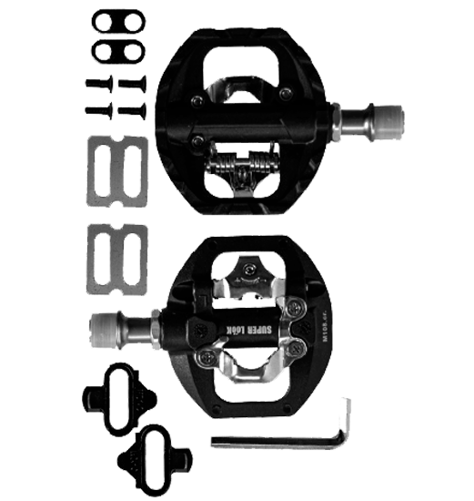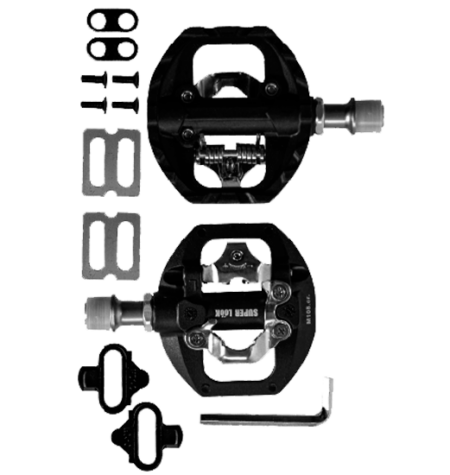 Pedales Superlook para MTB fabricados en PVC resistente, diseñados para ofrecer durabilidad, agarre y estabilidad en cada recorrido. Compatibles con calas e incluyen el par de pedales + calas, ideales para un mejor control y rendimiento al rodar.