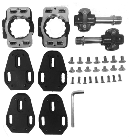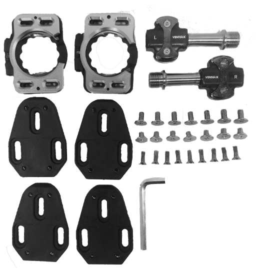 Pedales Ventoux de carbono diseñados para ruta, ofrecen ligereza, resistencia y un excelente rendimiento en cada pedaleo. Compatibles con calas sistema de moneda, incluyen par de pedales + calas para una experiencia completa y eficiente.